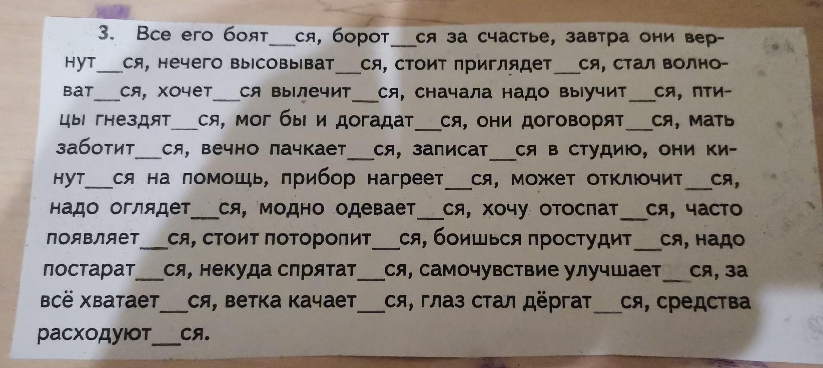 боятся, бороться, вернутся, высовываться, приглядеться, волноваться, хочется вылечиться, выучиться, гнездятся, догадаться, договорятся, заботится, пачкается, записаться, кинутся, нагреется, отключиться, оглядеться, одевается, отоспаться, появляется, поторопиться, простудиться, постараться, спрятаться, улучшается, хватается, качается, дергаться, расходуются