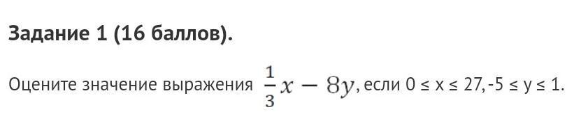 Оцените значение выражения algebra 9ek - 1.png, если 0 ≤ x ≤ 27, -5 ≤ y ≤ 1.