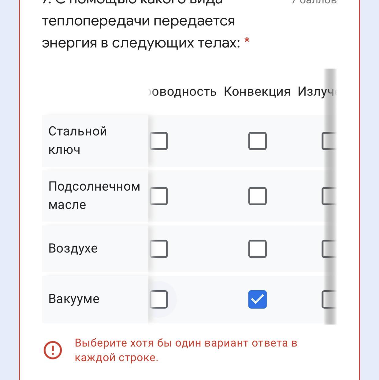 С помощью какого вида теплопередачи передается энергия в следующих телах