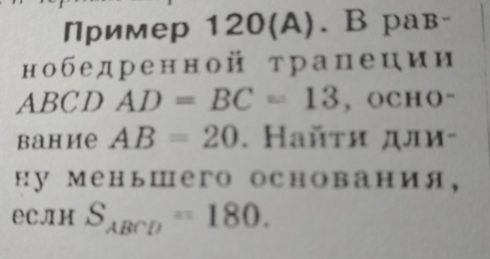 Опустим высоту DH , пусть CD=x, тогда AH=(20-x)/2, тогда
