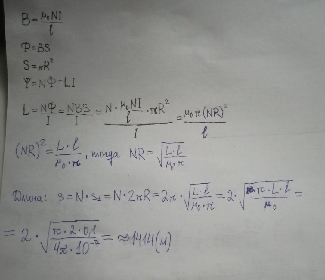 Перед инженером стоит задача разработать катушку индуктивности 2 Гн без сердечника, чтобы длина катушки была равна 10 см. Сколько метров провода нужно использовать для обмотки? Намотку считайте плотной, провод – тонким, каждый виток – окружностью.