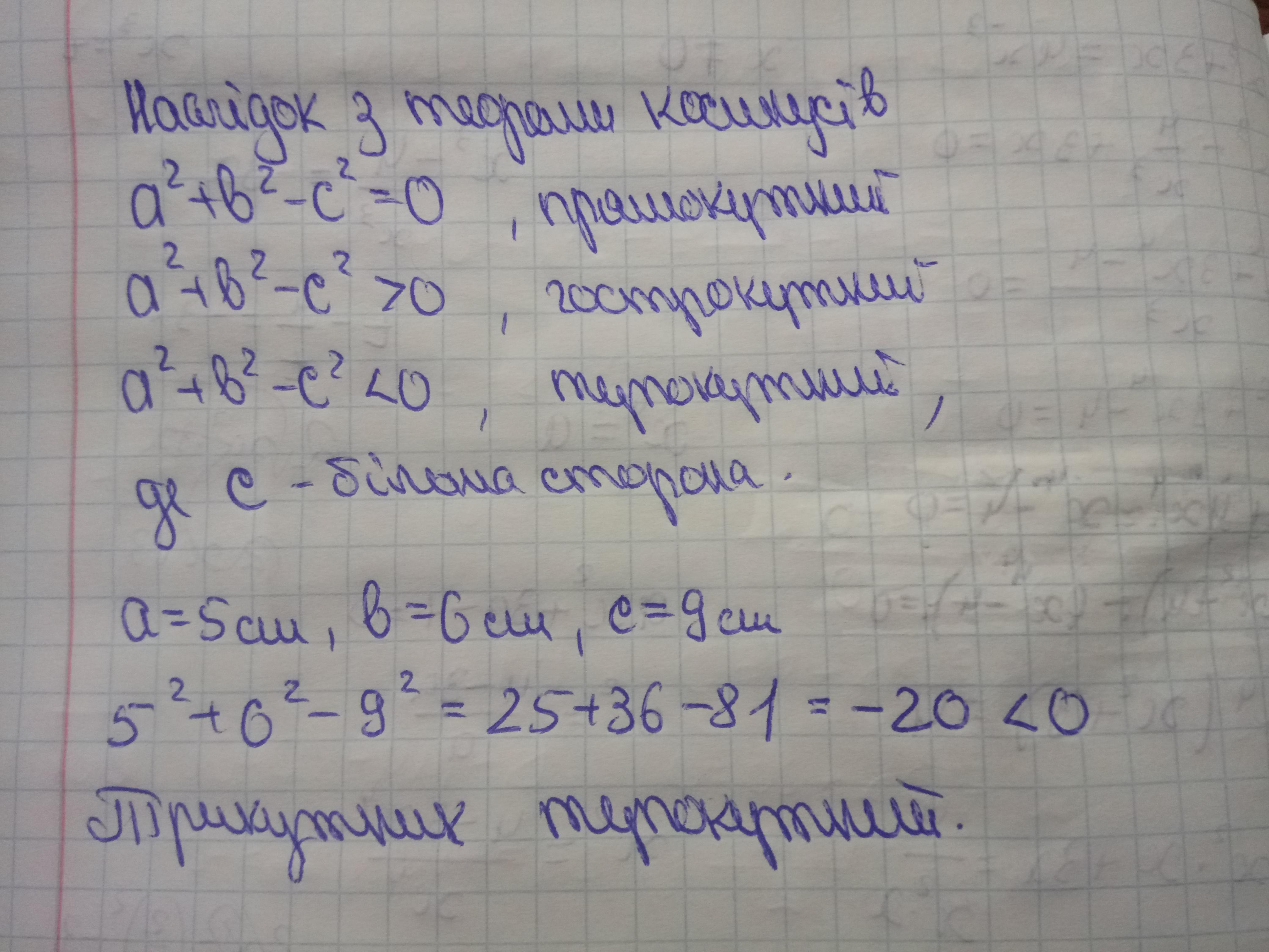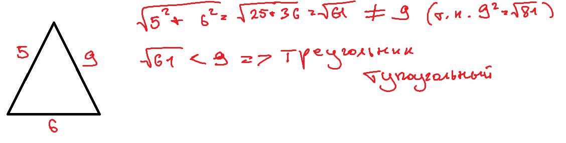 Если квадрат наибольшей стороны больше суммы квадратов двух других сторон: