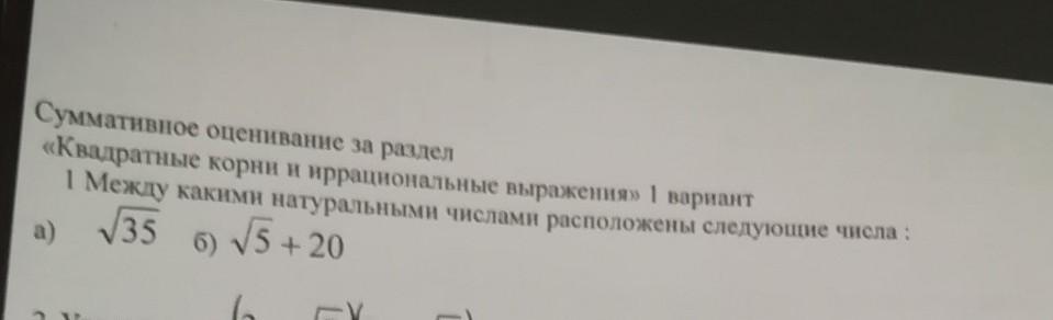 между какими натуральными числами распаложенны следующие числа : а) корень из 35 в) корень из 5+20