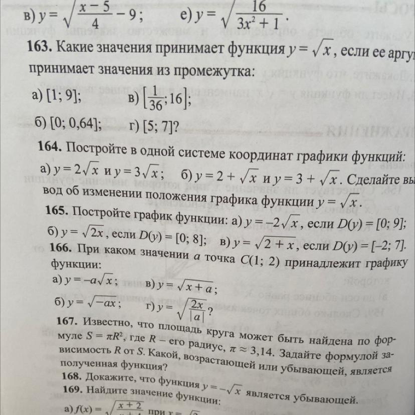 165. Постройте график функции: а) у = -2/х, если Dy) = [0; 9];