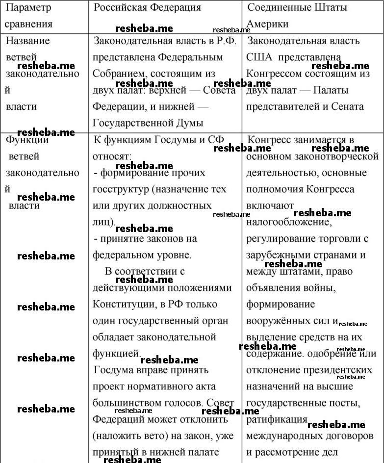 Сравните ветви государственной власти РФ и США. результаты работы оформите в виде таблице Параметры сравнения: