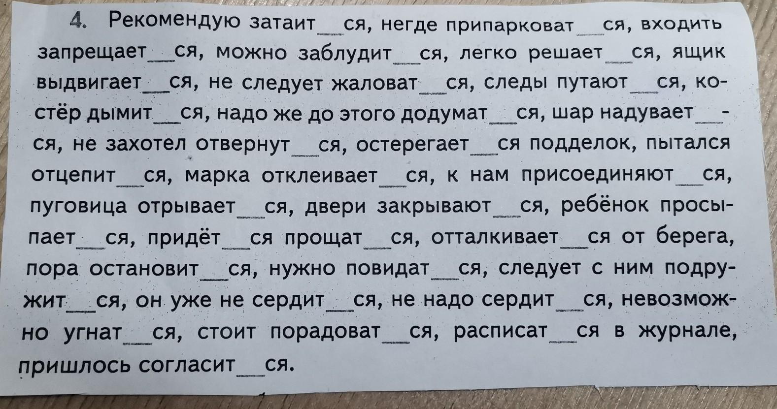 Затаиться припарковаться запрещаеться заблудиться решаться