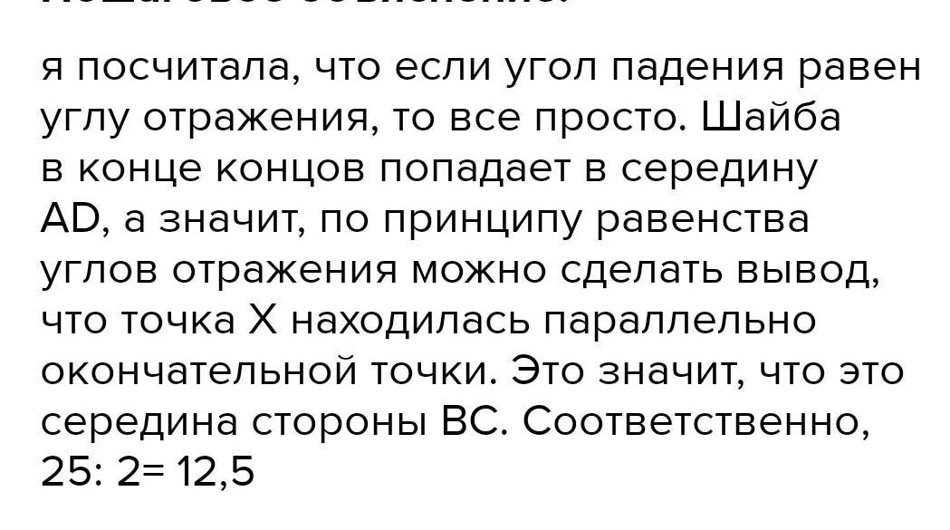 Хоккей ABCD - прямоугольная хоккейная площадка с бортом по периметру. Шайба (точка) находится на стороне АВ на расстоянии 1 от точки А. Требуется ударить по шайбе так, чтобы она ударилась в некоторую точку X на стороне BC. Затем, отскочив, ударилась о борт CD, после чего попала точно в середину стороны AD. Все «отскоки» происходят по принципу «угол падения равен углу отражения», а лед на площадке идеально гладкий. Найти длину отрезка BX, если известно, что AB = 11, AD = 21.