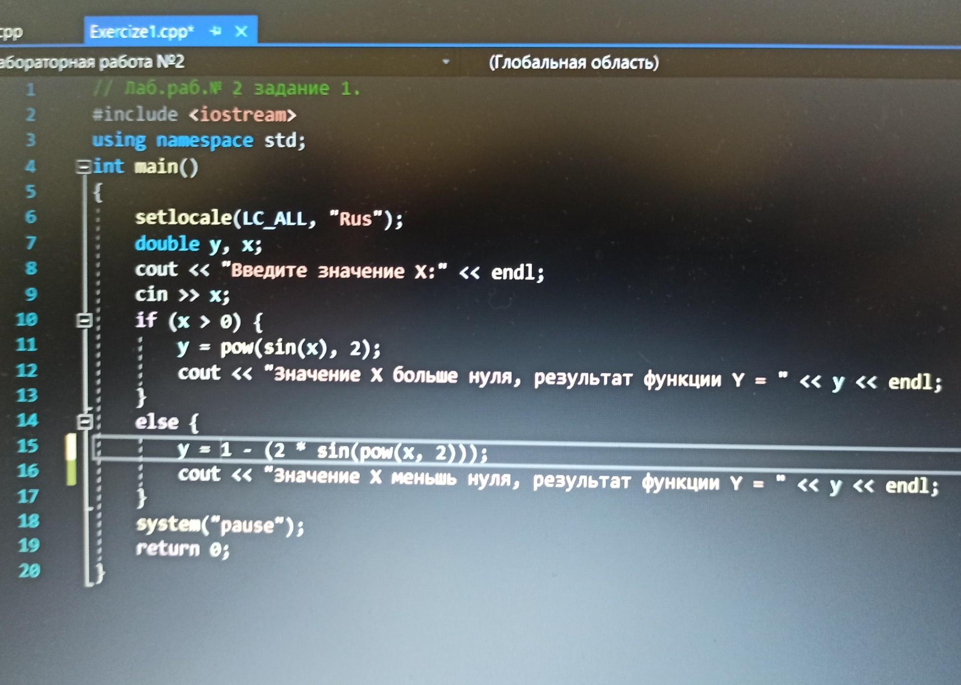 Дана следующая задача:Рассчитать значение у при заданном значении х: у = sin²x при х>0; 1-2sinx² в противном случае