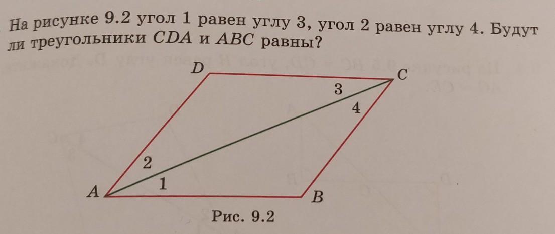 на рисунке 9.21 равен углу 3 угол 2 равен углу 4 Будут ли треугольники cda и ABC равны
