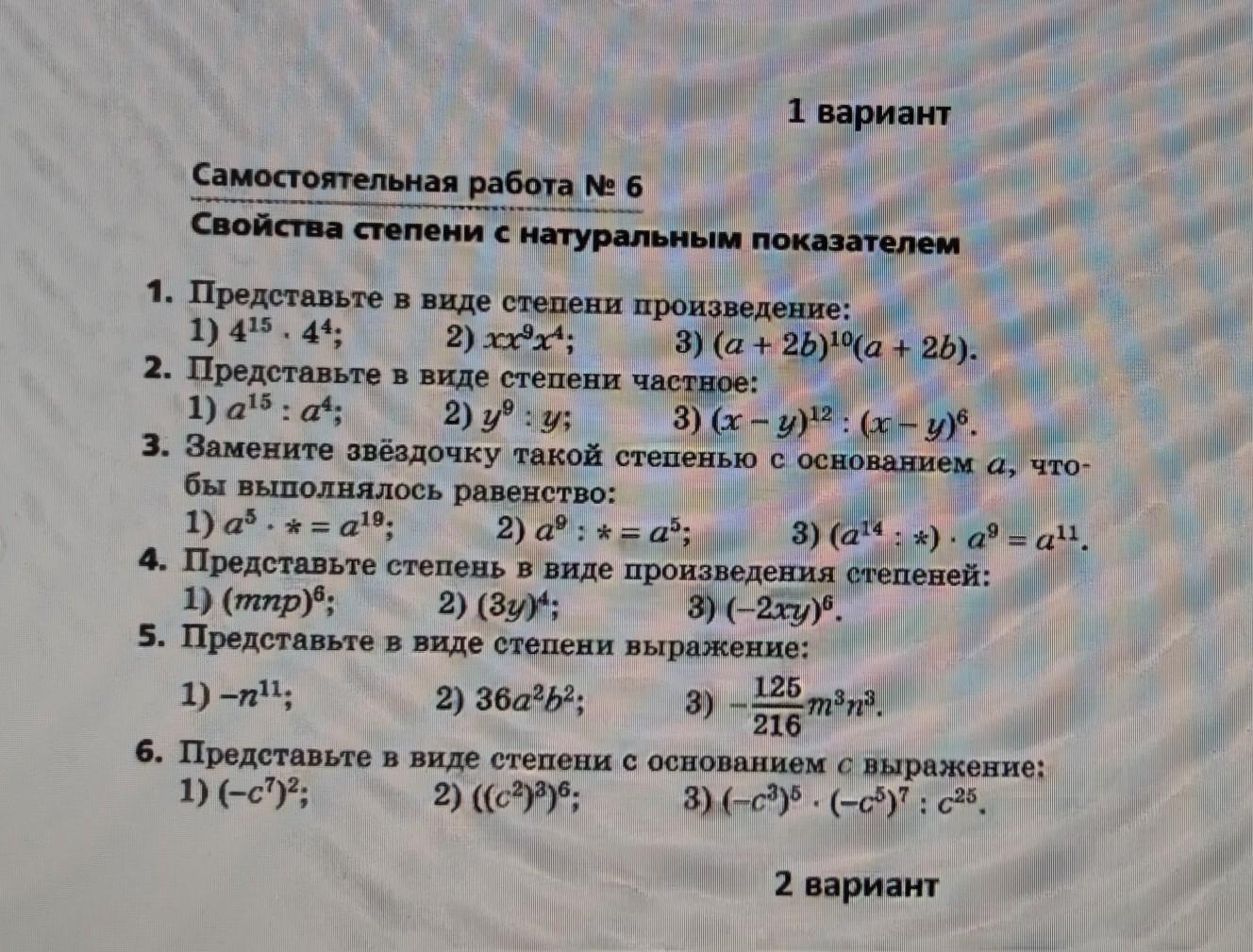5.1) -n⁵×n⁶; 2)(6ab)²; 3)(-41,6/72mn)³.