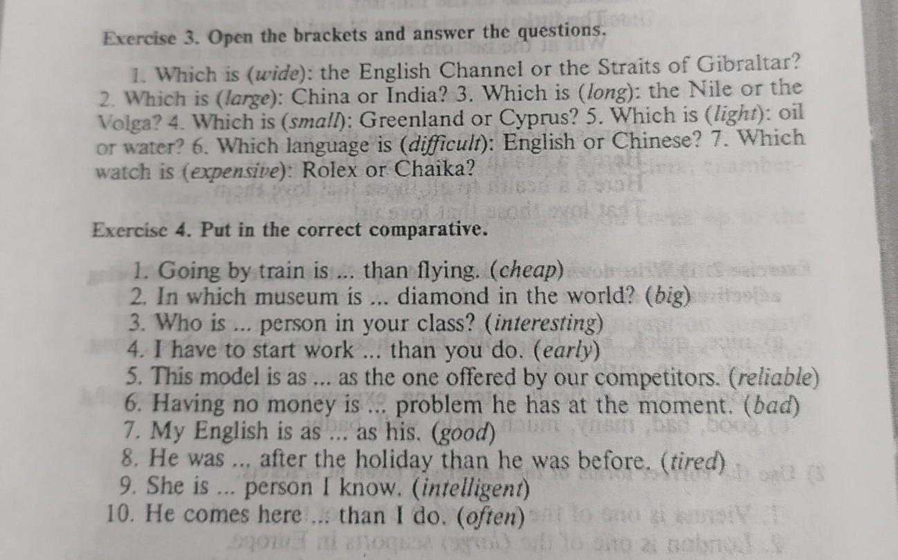 Cheaper, the biggest, the most interesting, earlier, reliable, the worst, good, more tired, the most intelligent, more often