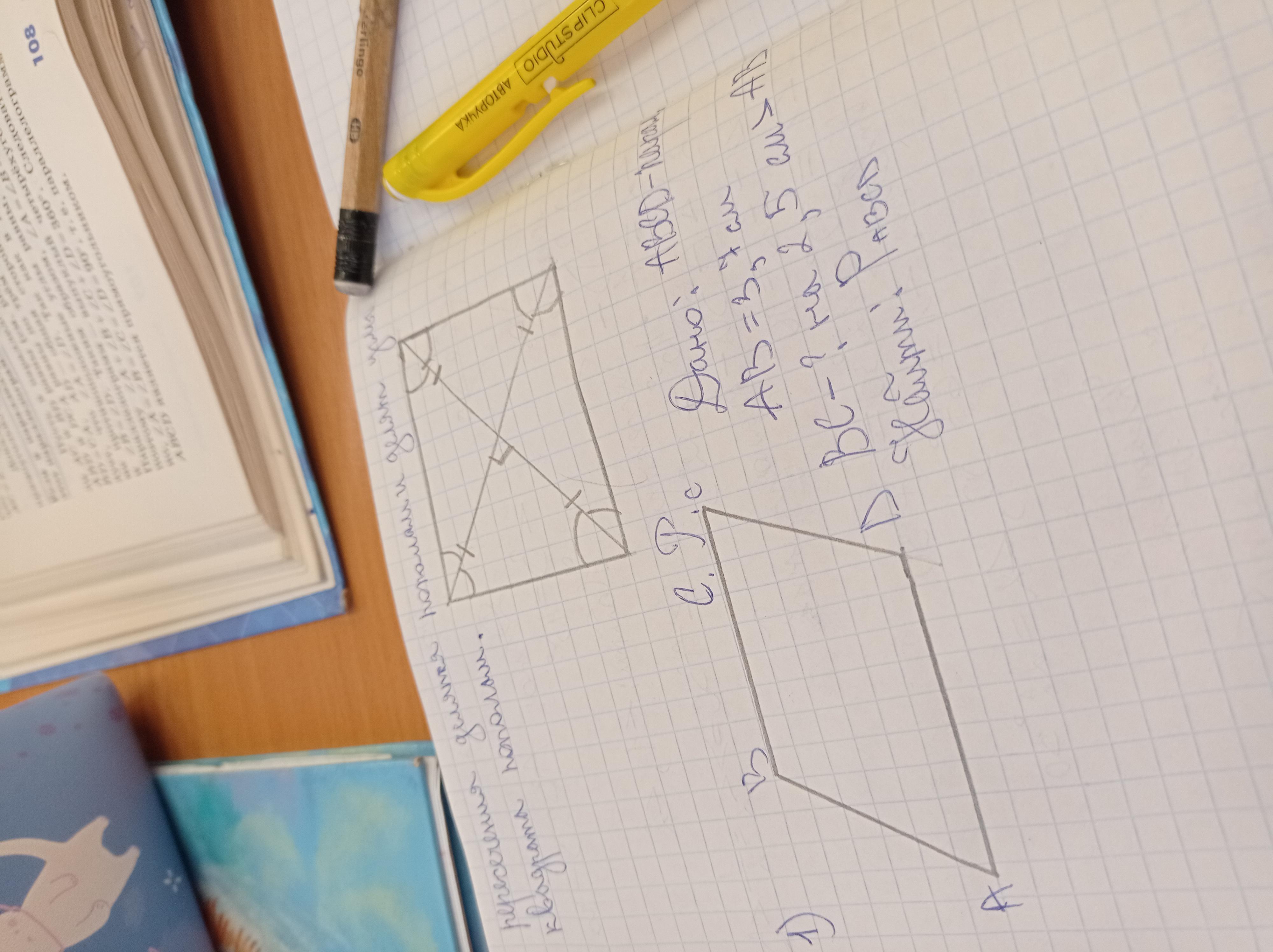 bc = ad = 3,7 + 2,5 = 6,2cм