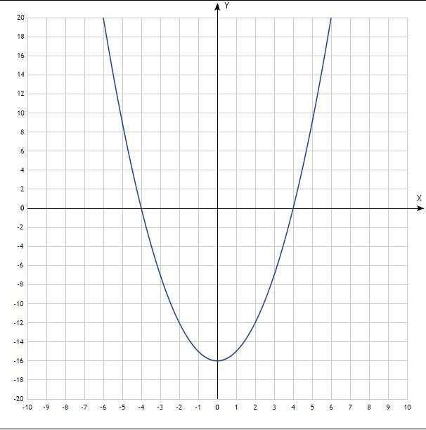 График - классическая парабола у = х² со смещением вниз по оси Оу на 16 единиц, отсюда: