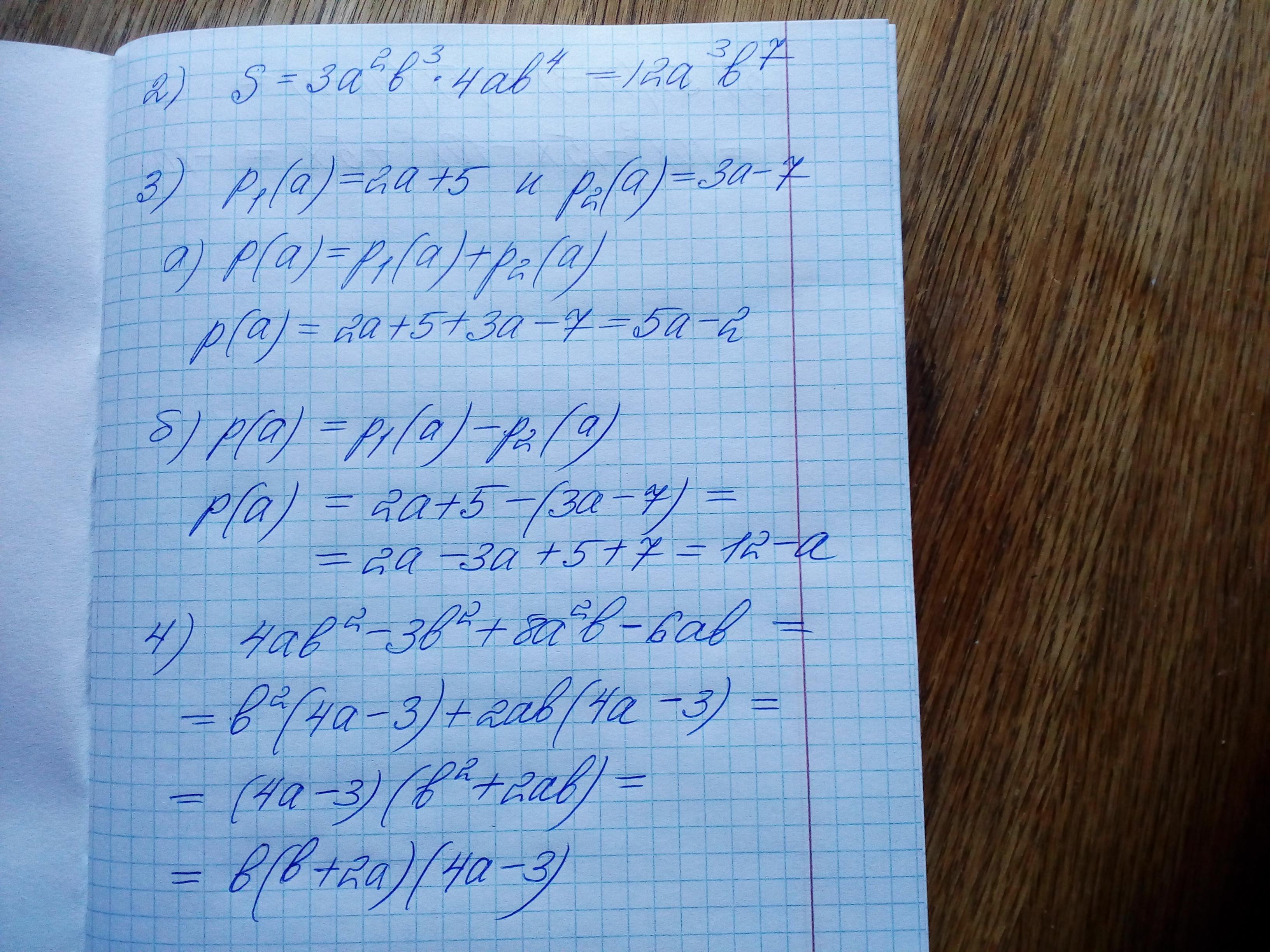 3) Даны многочлены рі(а) =2a+5 ирг(а) =3а – 7. Найдите: а) р(а) = pia) + ру(а) б) р(а) = pi(a) — ра(а)