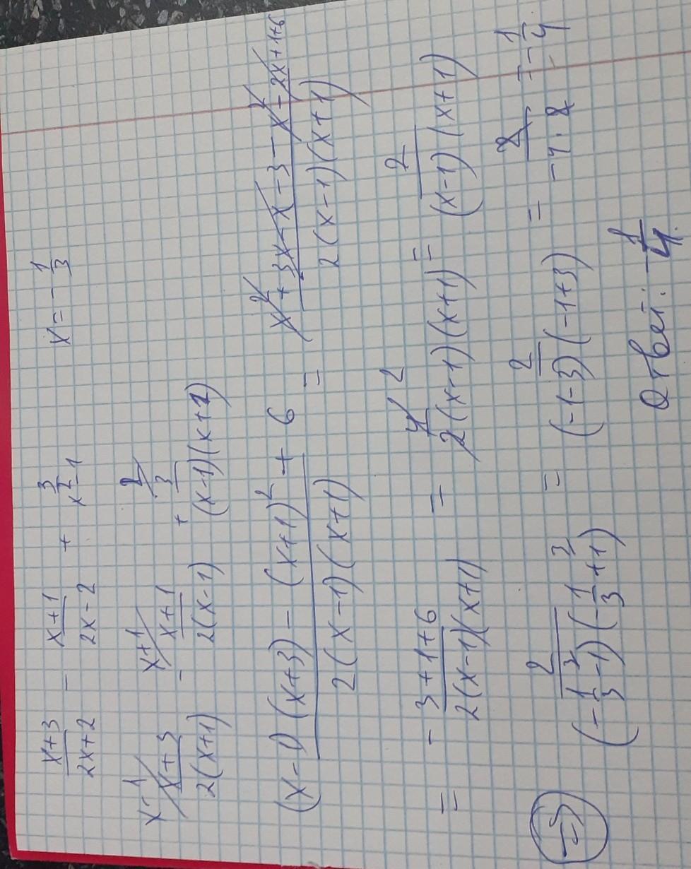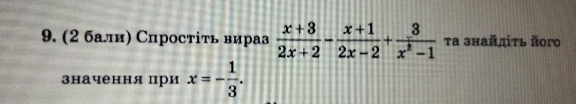 спростіть вираз (x+3)/(2x+2)- (x+1)/(2x-2)+3/(x²-1) та знайдіть його значення при x=-1/3