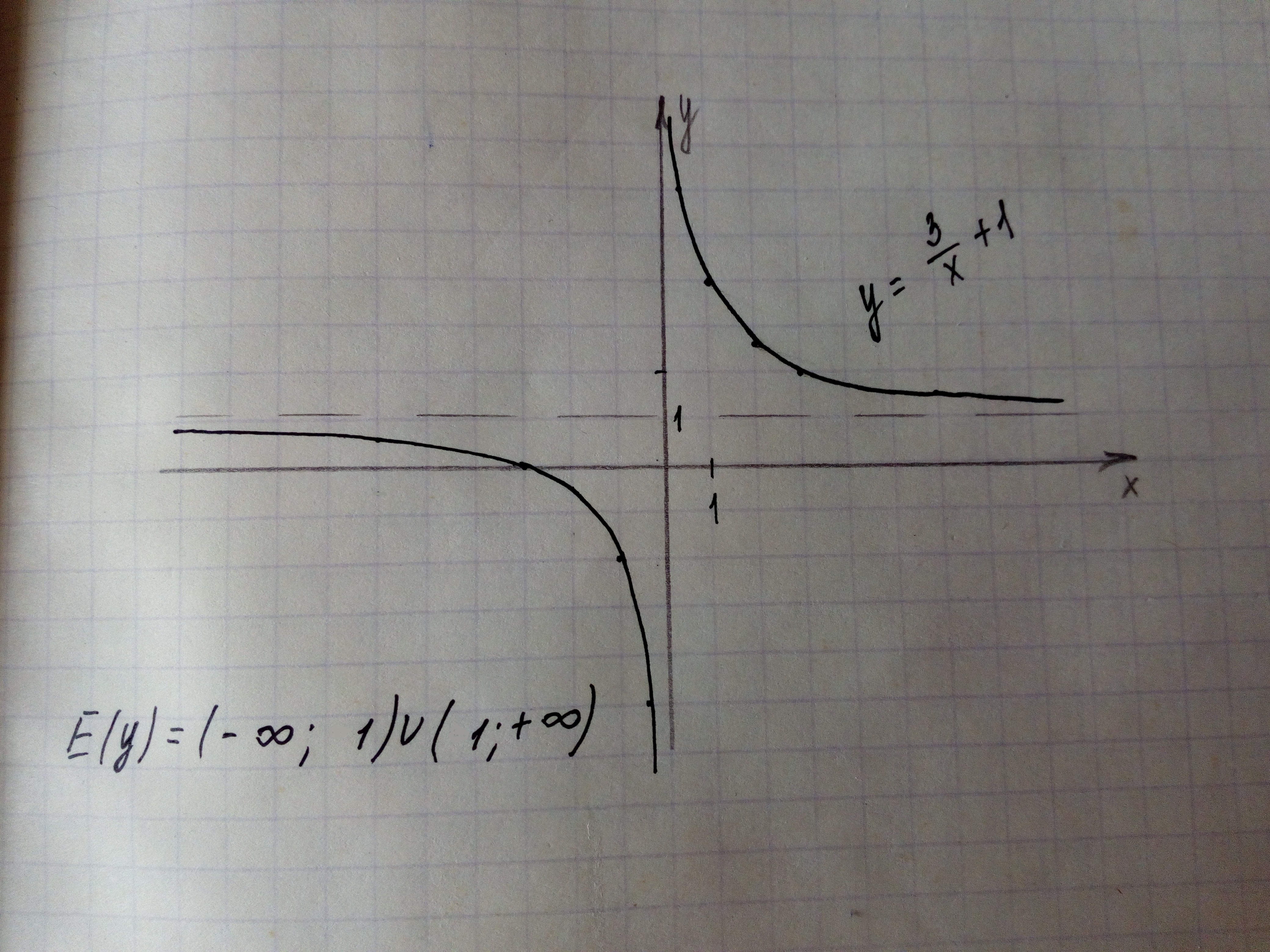 График данной функции получается из графика функции y=3/x путем смещения на 1 единицу вверх по оси oY