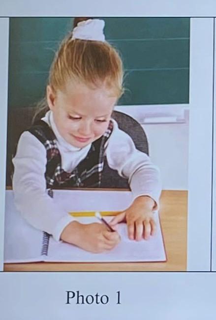 Schoolgirl writes something in the lesson at school