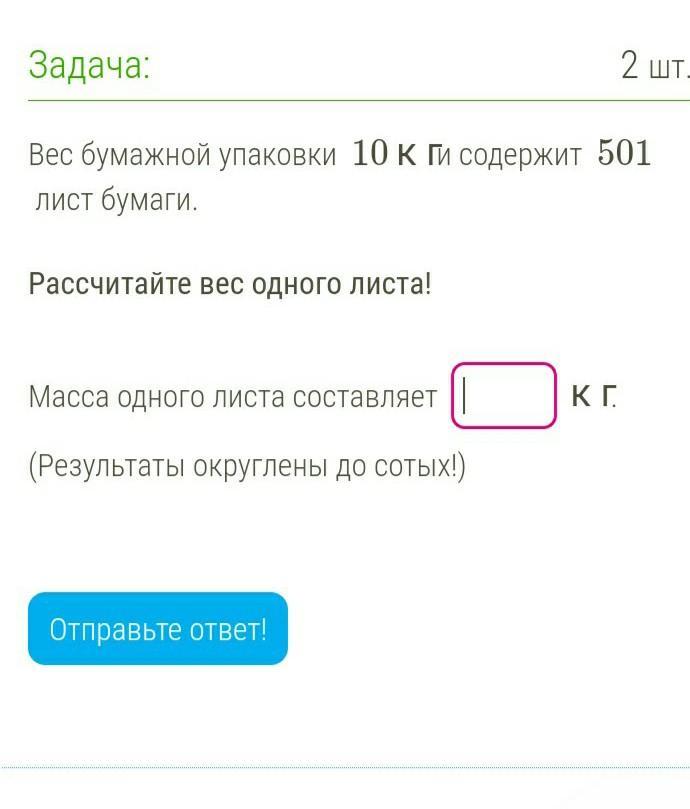 Для нахождения массы одного листа, нужно массу всей упаковки разделить на количество листов в упаковке: