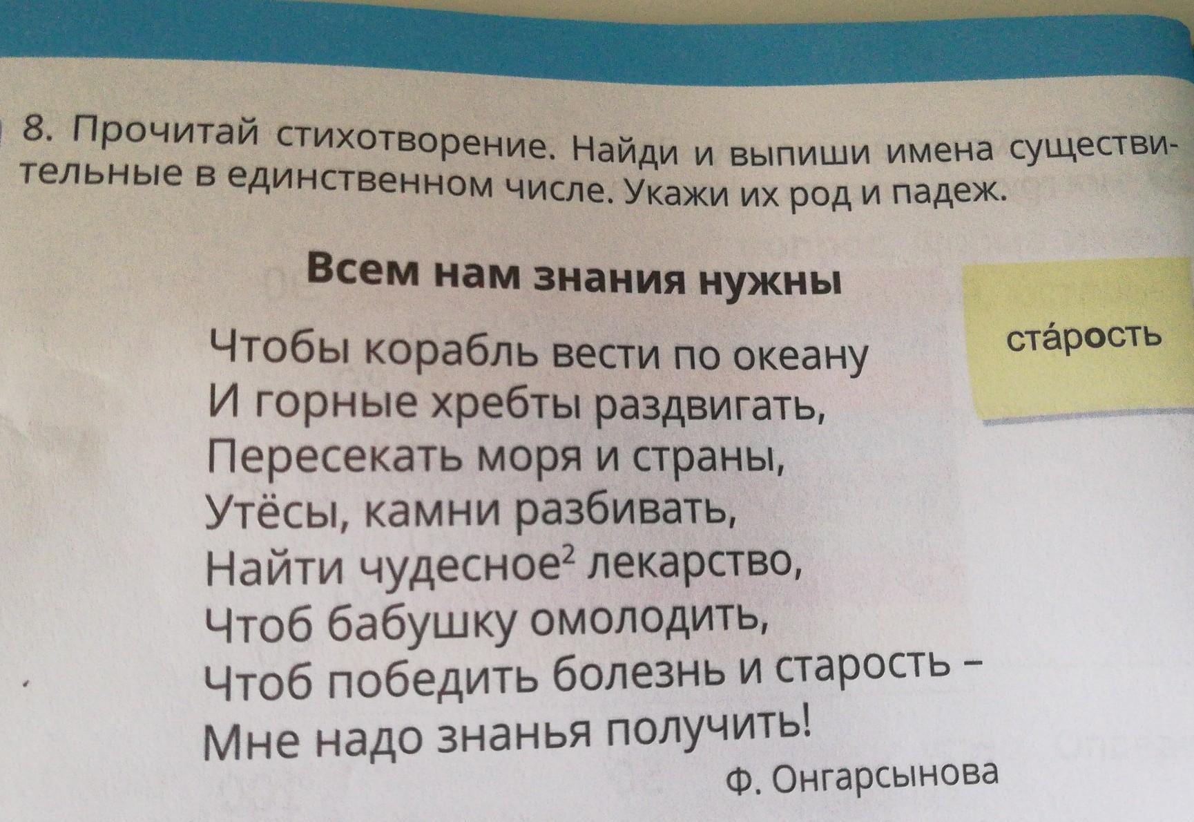 Прочитай стихотворение Найди и выпиши имена существительные в единственном числе укажи их род и падеж