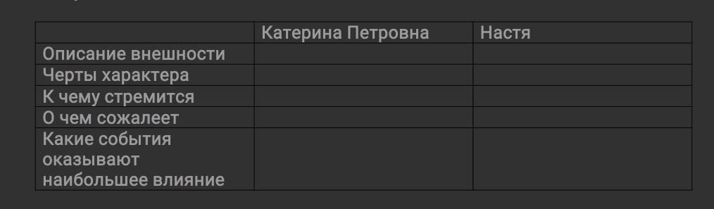 нужно заполнит таблицу Катерина Петровны и Насти