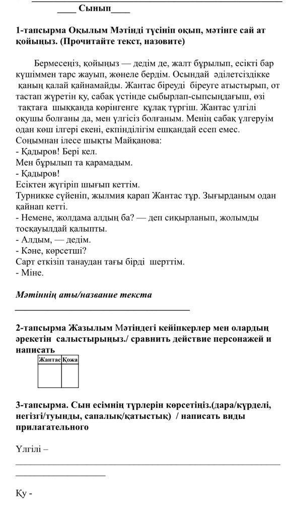 Жантас:өте қу,Қожаның ұнатпайды,үлгілі оқушы