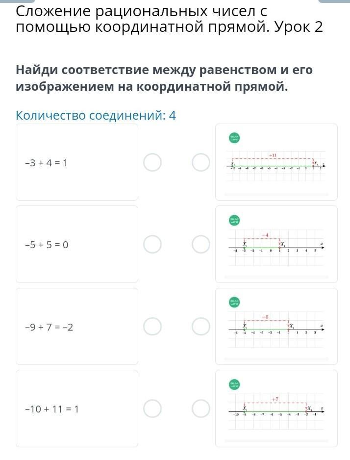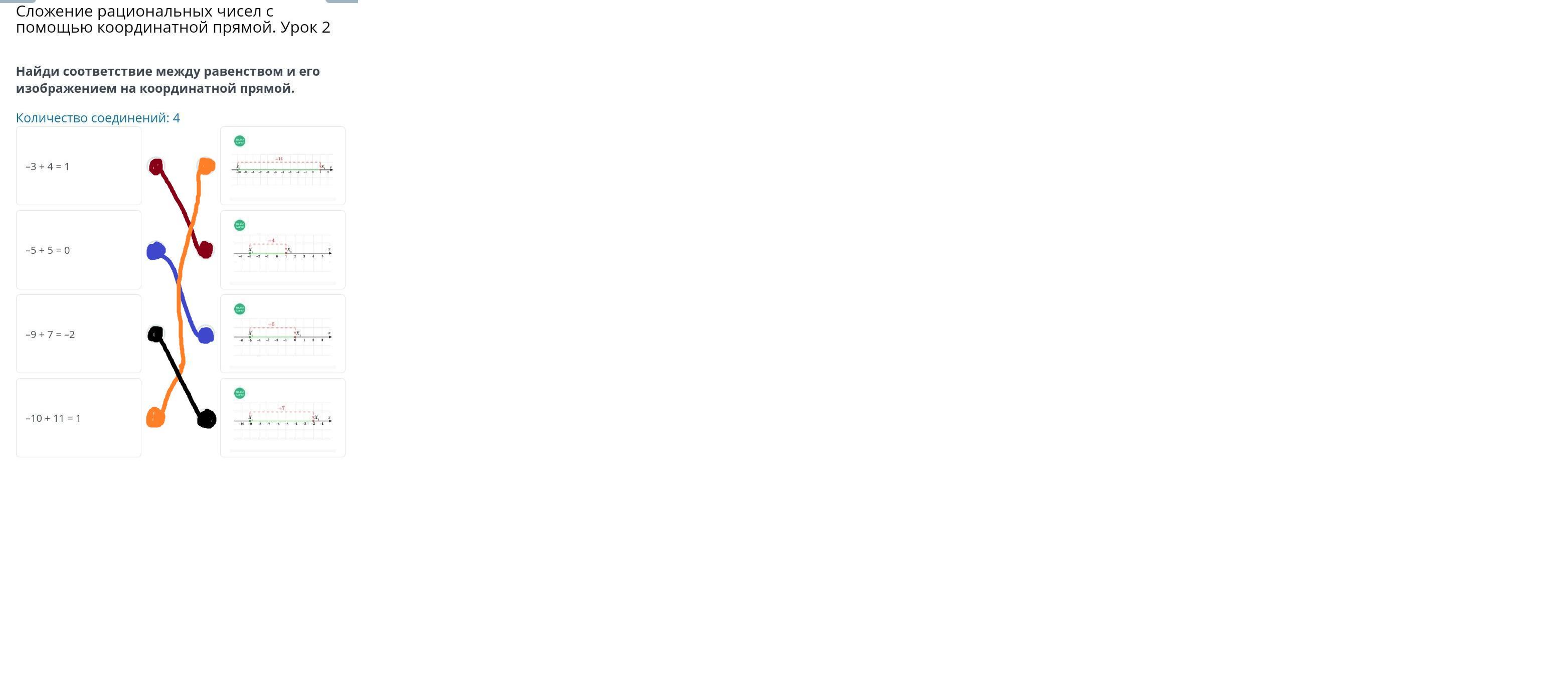 Найди соответствие между равенством и его изображением на координатной прямой.