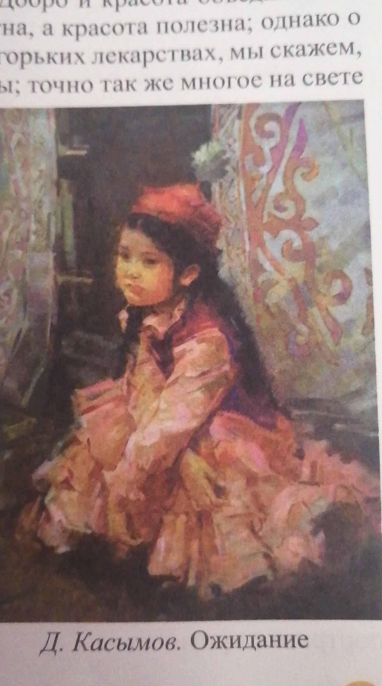 Задание 2. Рассмотрите репродукцию картины Казахстанского художника Досбола Касымова. Кто изображен на картине? Опишите девочку. В чем красота? Как художнику удалось отразить внутренний мир своей героини? Д. Касымов- ожидание