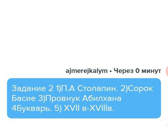 Задание 2 1)П.А Столапин. 2)Сорок Басие 3)Провнук Абилхана 4Букварь. 5) ХVİİ в-XVİİİв.