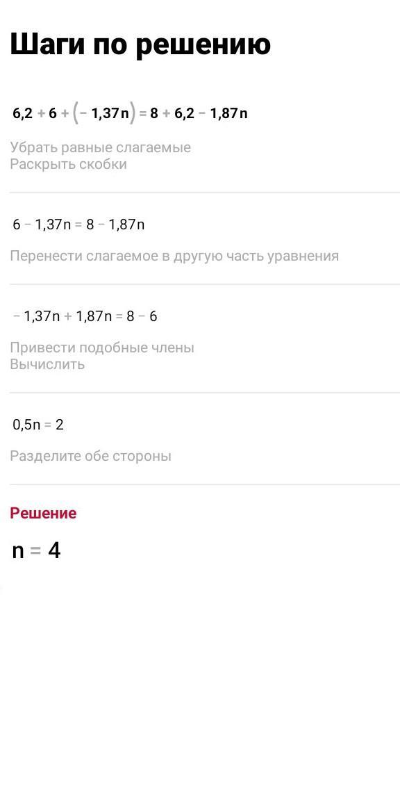 6,2 + 6 + ( -1,37n) = 8 + 6,2 - 1,87n