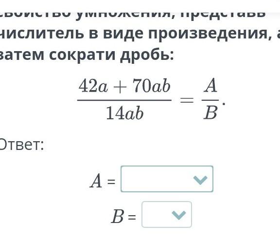 Применив распределительное свойство умножения, представь числитель в виде произведения, а затем сократи дробь: