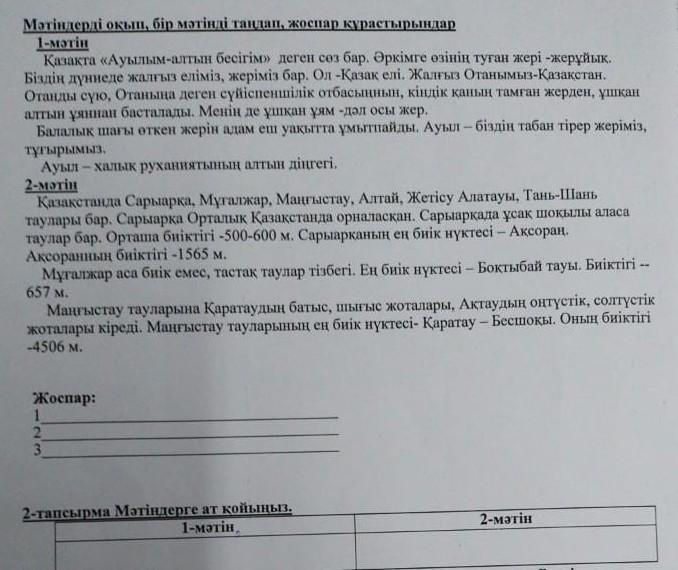 1мәтін Ауылым-алтын бесігім 2мәтін Қазақстан Сарыарка