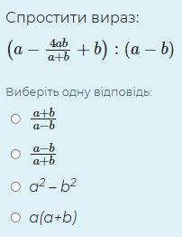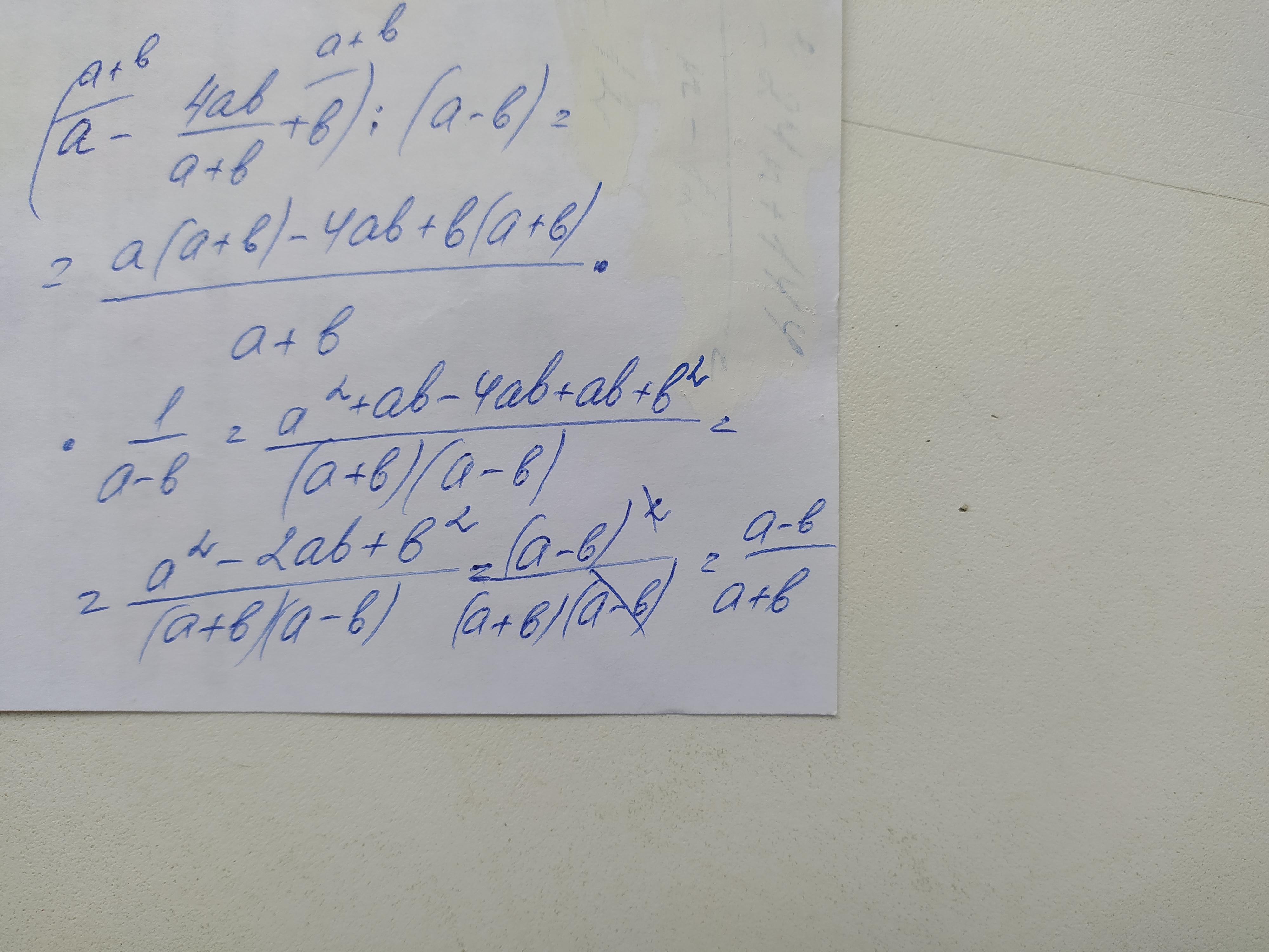 Помогите пожалуйста дам 30 баллов!! упростить выражение : \left( {a - \frac{{4ab}}{{a + b}} + b} \right):(a - b)