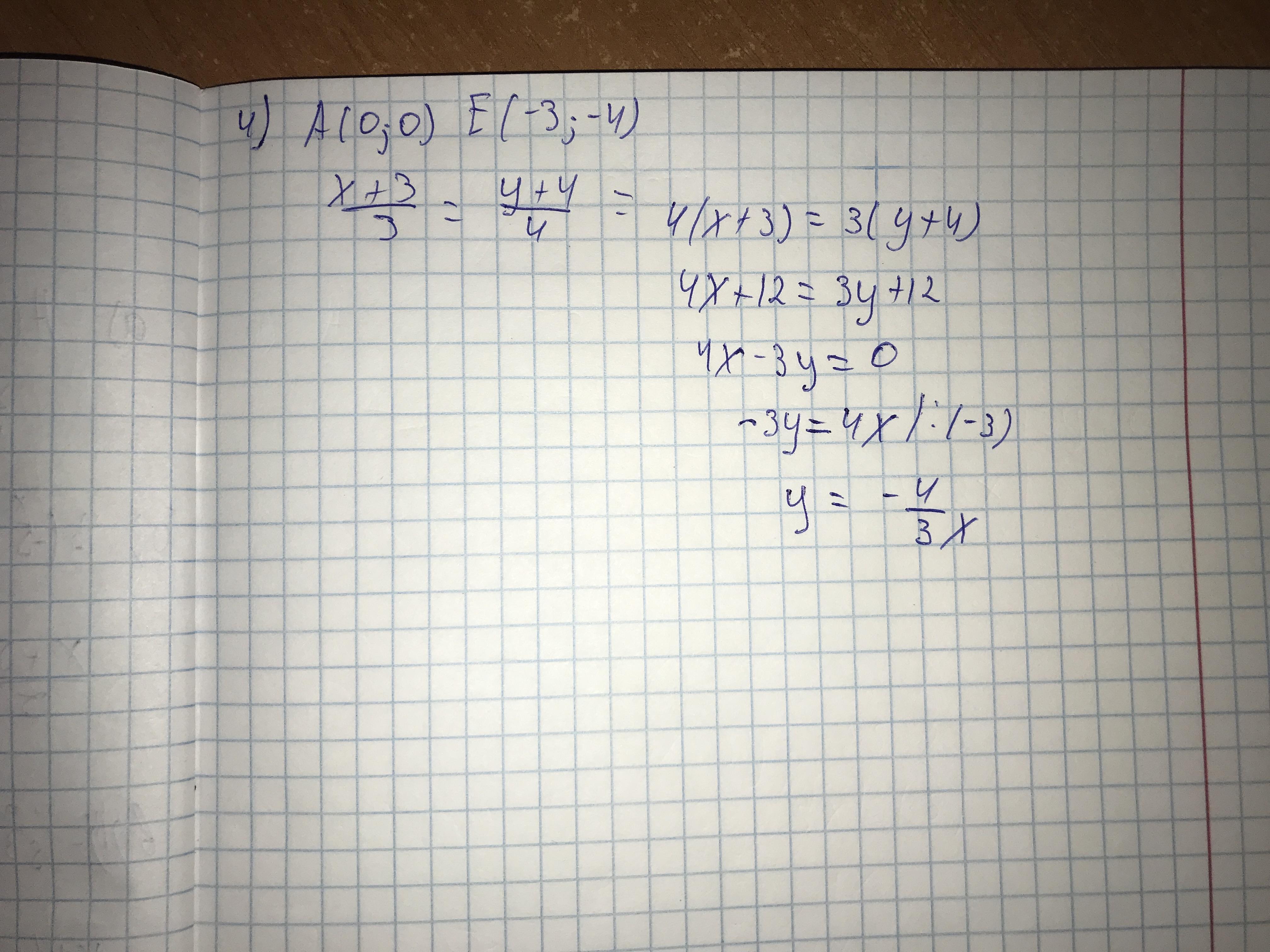 Пользуясь данными таблицы, запишите уравнения прямых АВ, АС и т. Д.A(0;0) В(1; 3) С(-2; 5) D(2; -2) E(-3; -4) М(-1; 4)