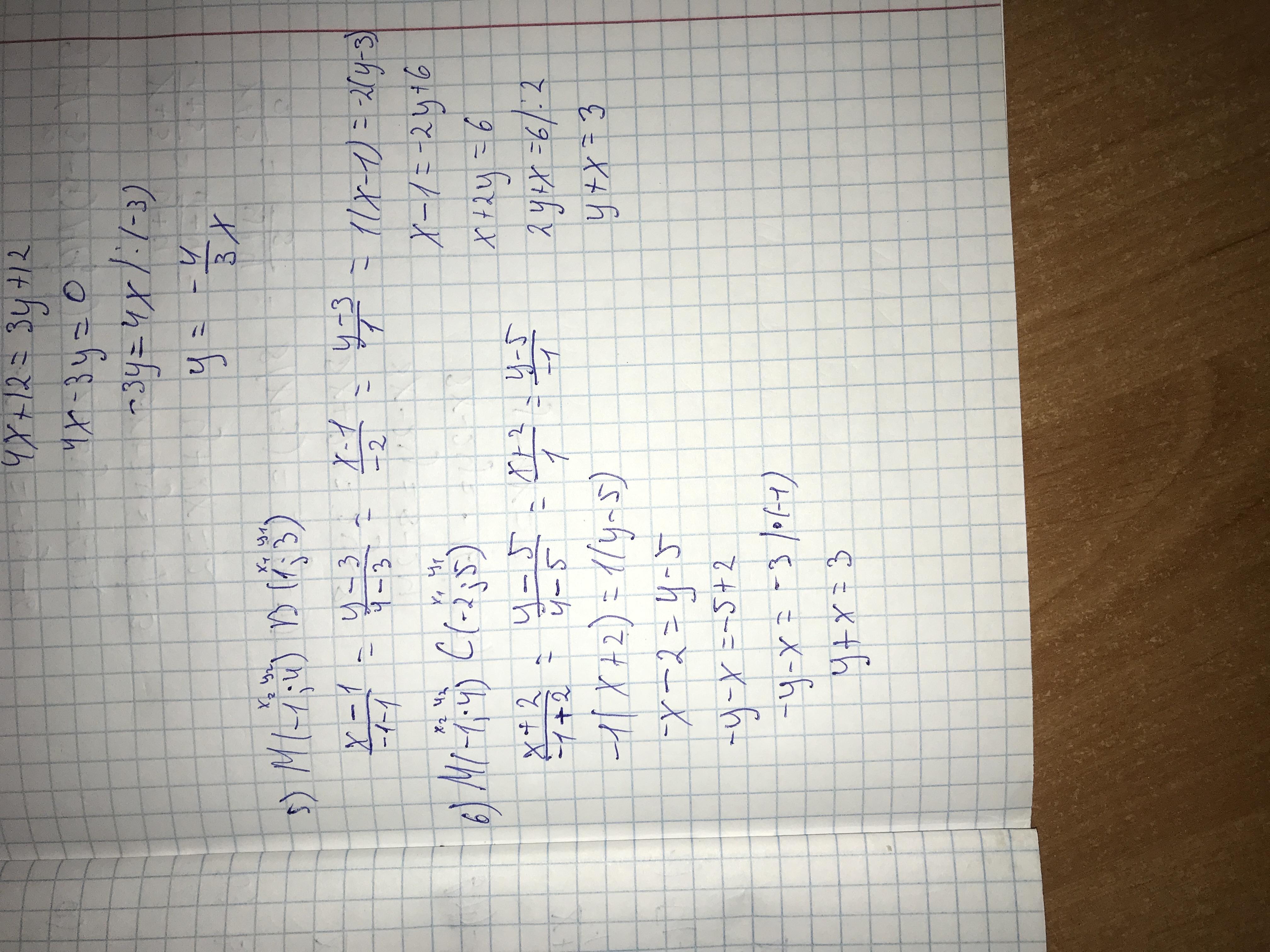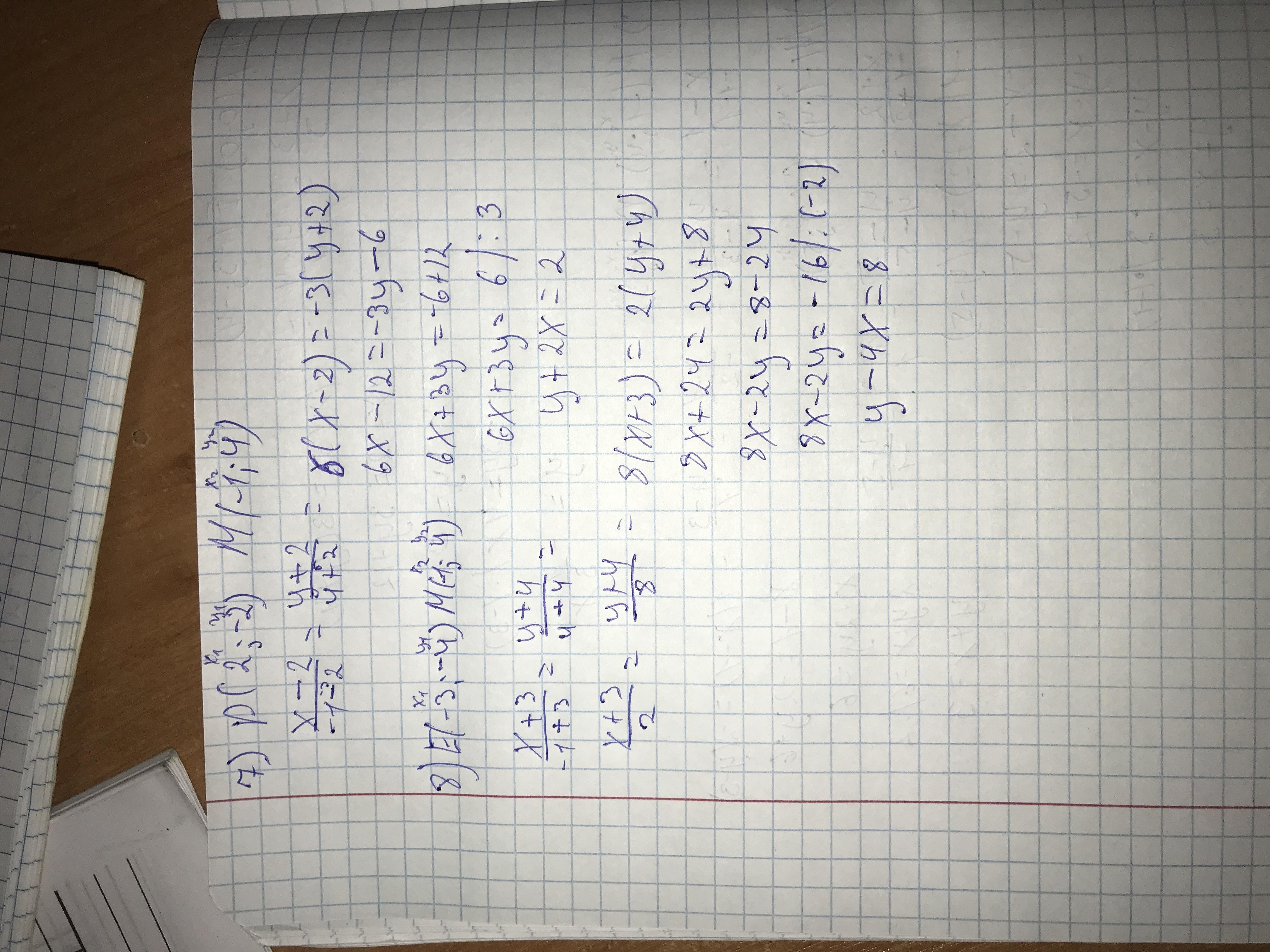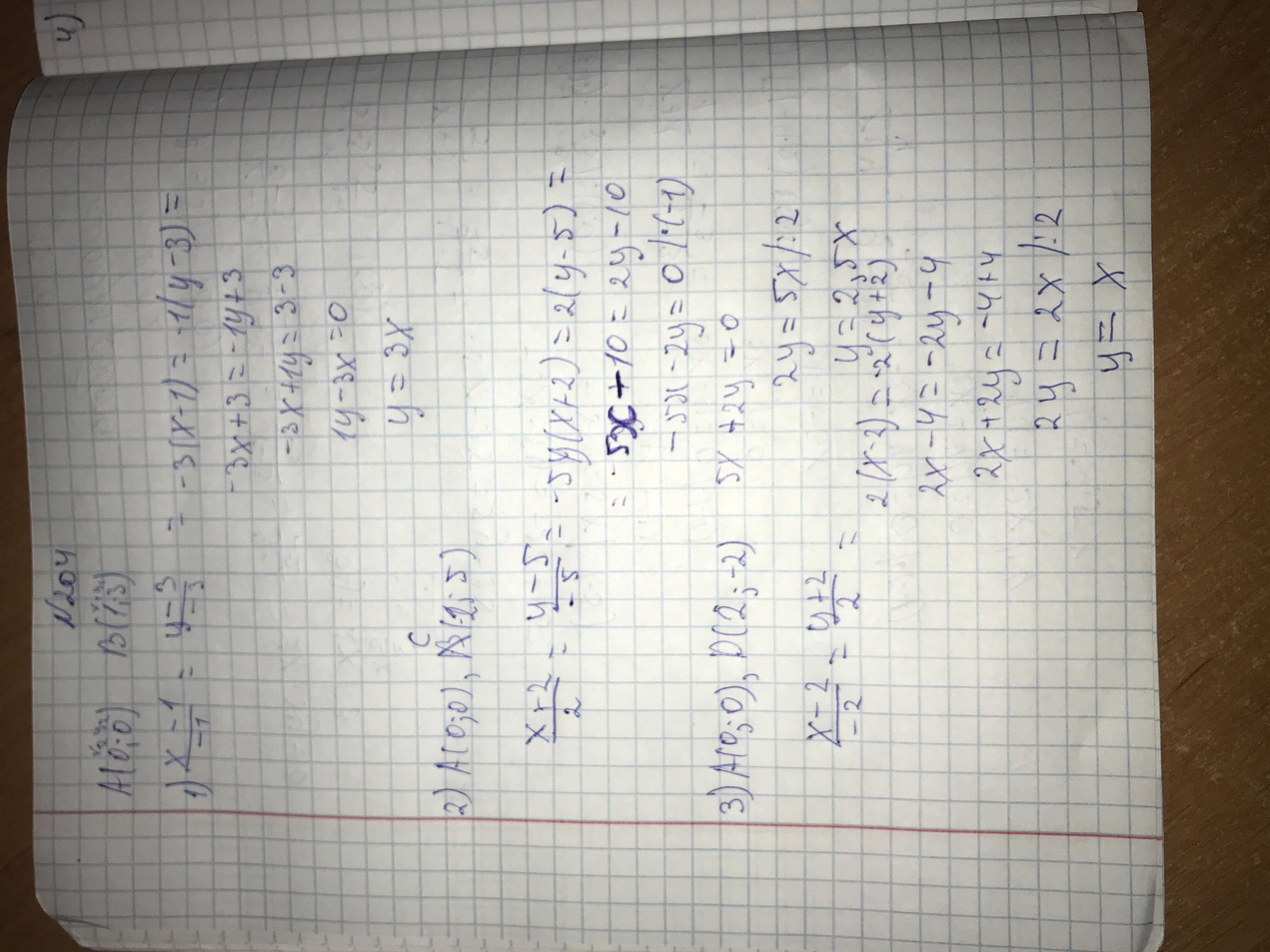Користуючись даними таблиці, запишіть рівняння прямих АВ, АС і т. д. A(0;0) В(1; 3) С(-2; 5) D(2; -2) E(-3; -4) М(-1; 4)