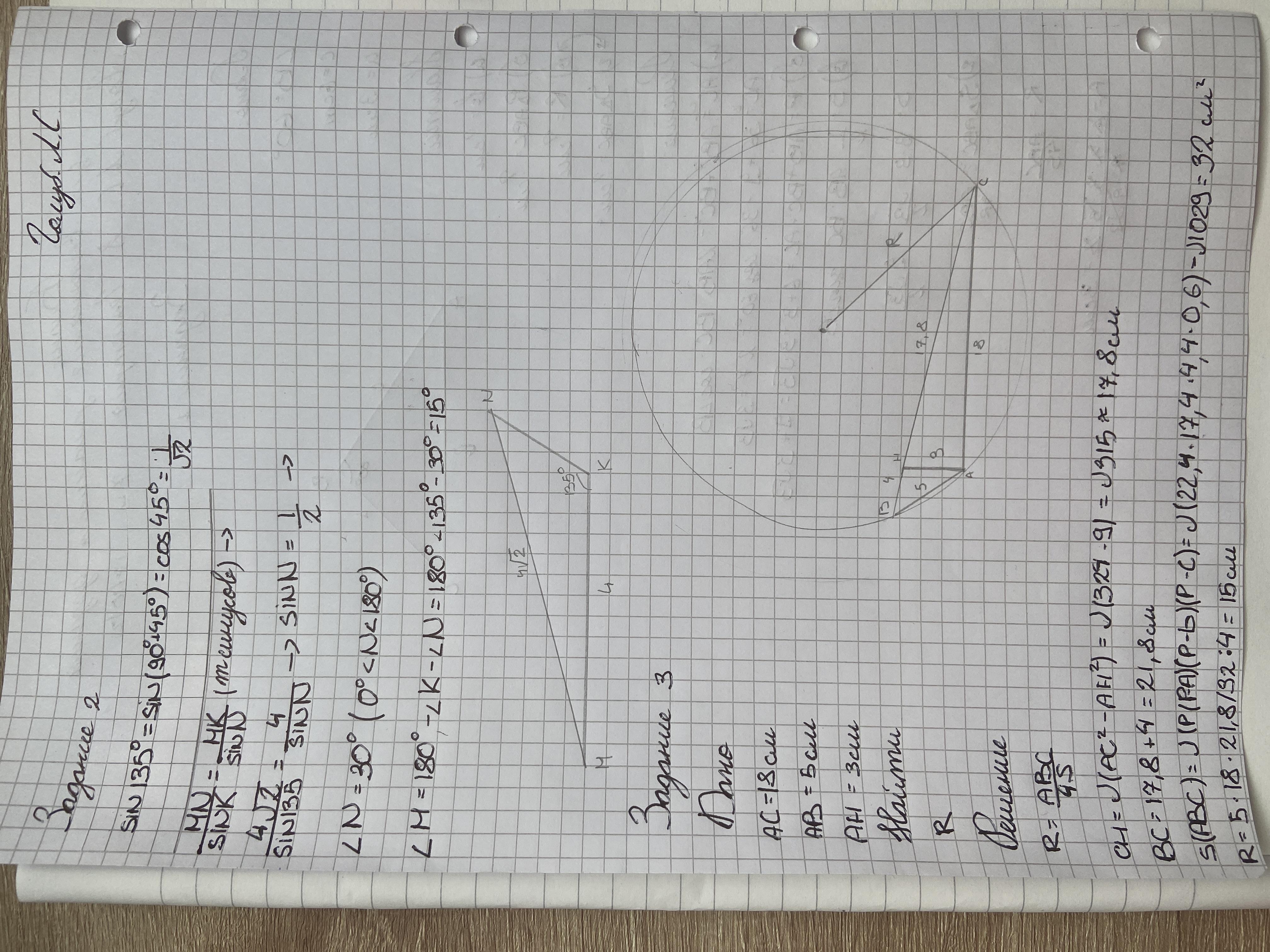 Две стороны треугольника равны 5 см и 18 см, а высота, проведенная к третьей стороне, – 3 см. Найдите радиус окружности, описанной около данного треугольника.