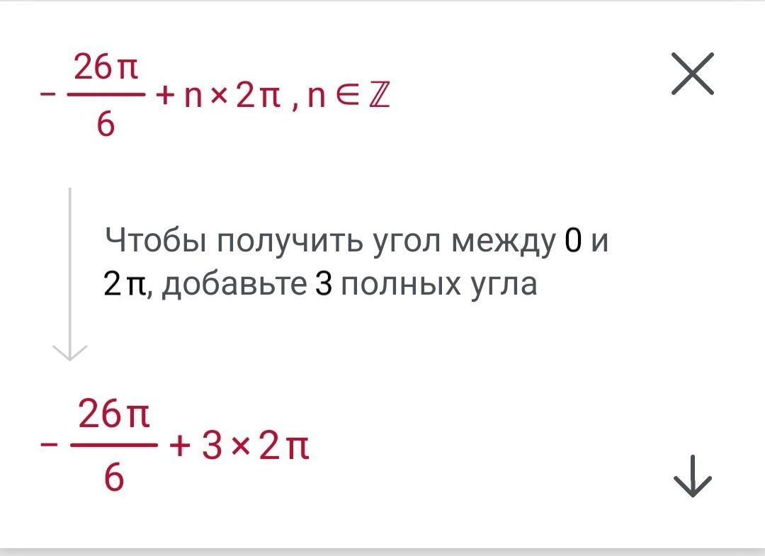 То есть можно сообразить, что в числитель к (-26П) надо прибавить число, большее 26П, чтобы получить положительный угол. И соответственно подбирать n .
