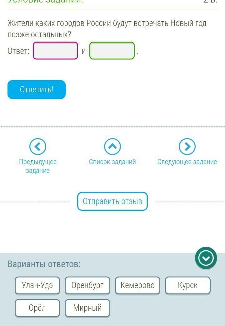 Курск и Орёл, так как они находятся в 0 Московском часовом поясе. Остальные города находятся в больших часовых поясах