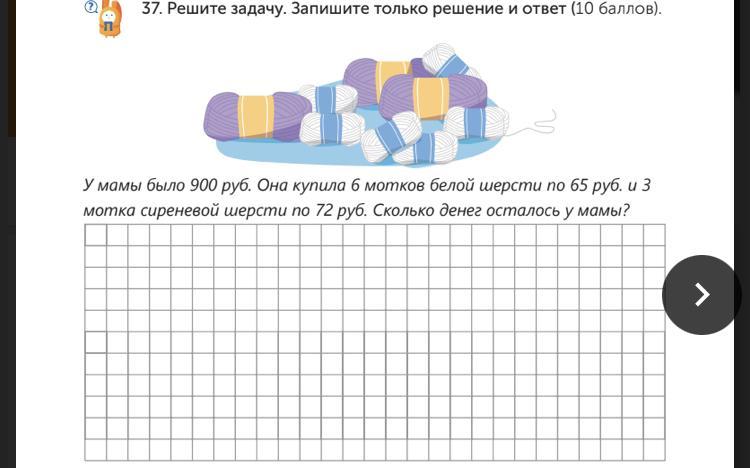 Ответ:65*6=390 руб потратила мама на белую шерсть