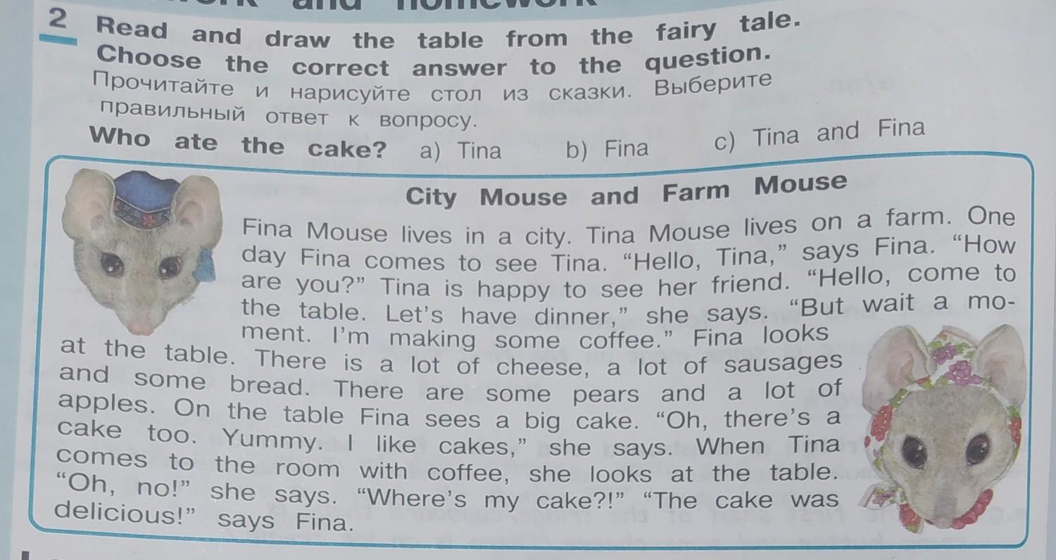 Read and draw the table from the fairy tale. Choose the correct answer to the question. Прочитайте и нарисуйте стол из сказки. Выберите правильный ответ к вопросу.