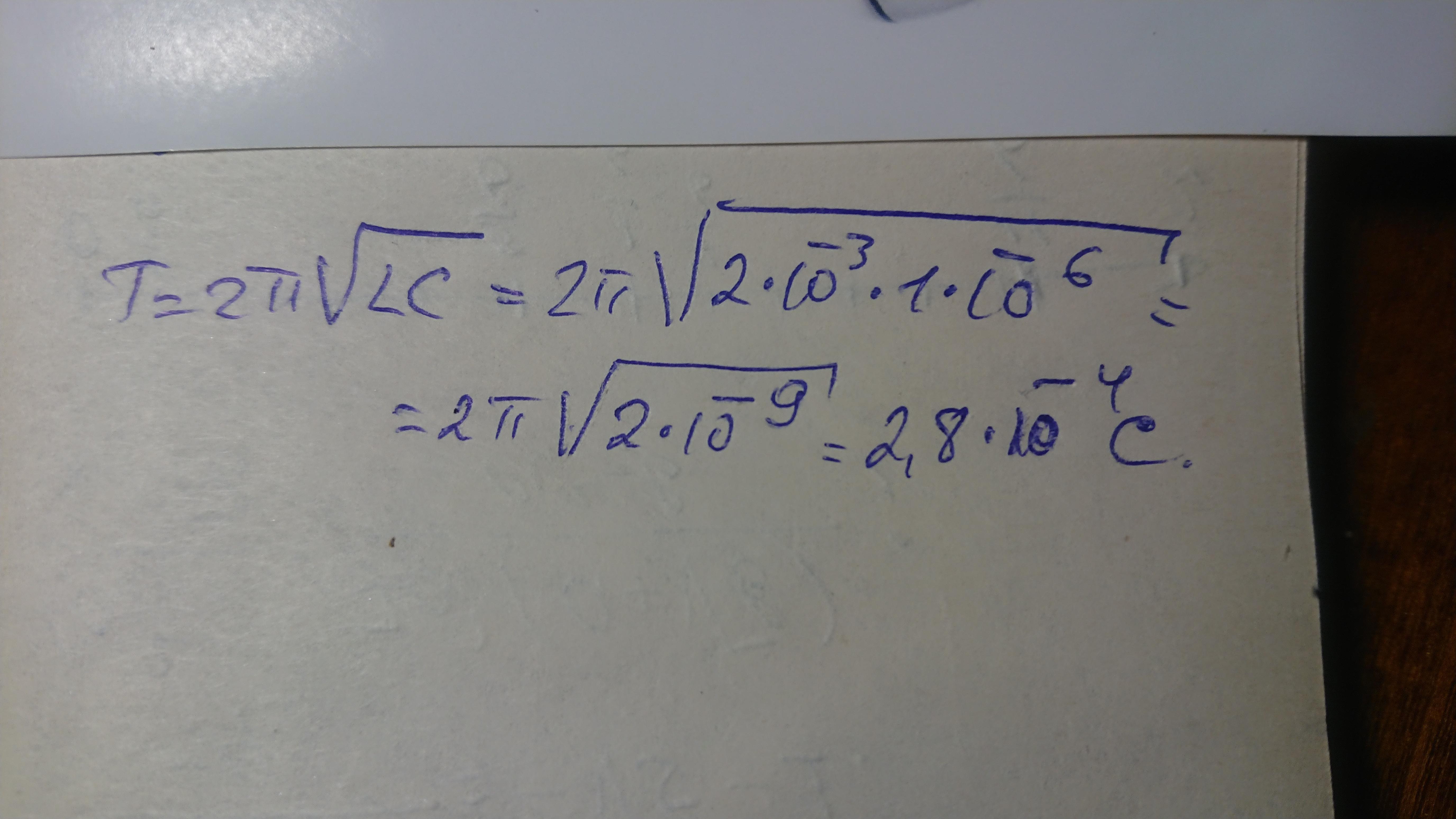 Ответ: считаем по формуле Томсона, 2,8*10^(-4) с. См фото.