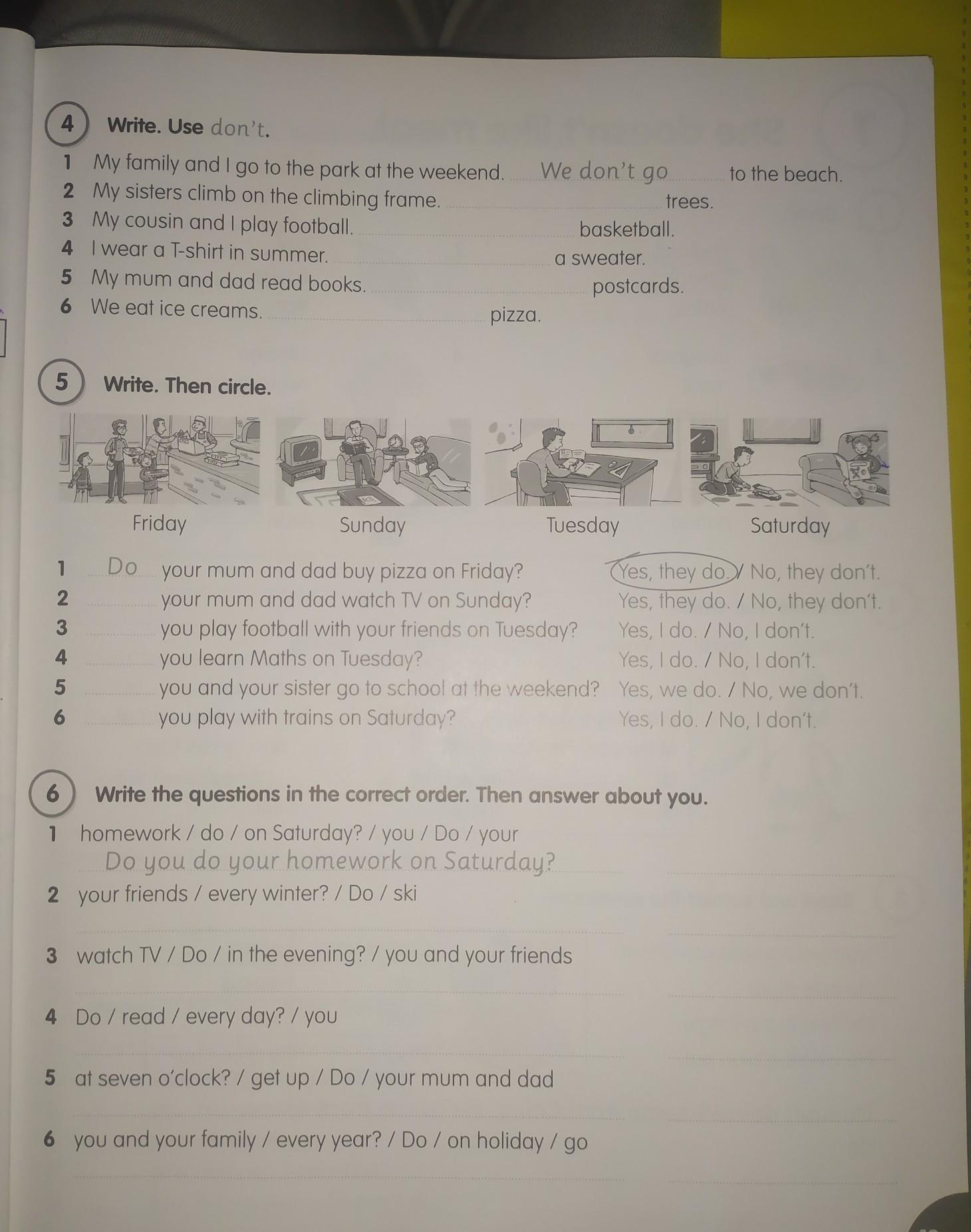 5) Do your mum and dad get up at seven o’clock?