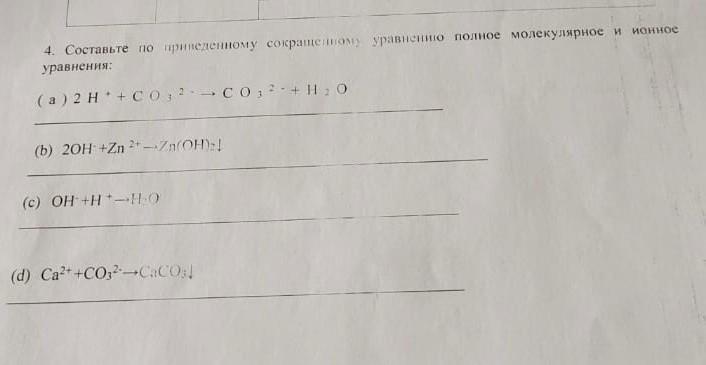 4.Составьте по сокращенному приведенному полное ионное и молекулярное уравнение