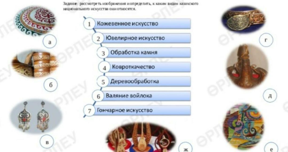 Помогите пожалуйста!!! Задание: рассмотреть изображения и определить, к каким видам казахского национального искусства они относятся. Труд 8класс. Дам 10баллов