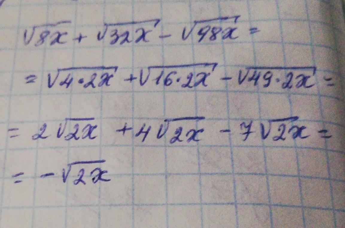 упростите выражение √8х+√32 х-√98х