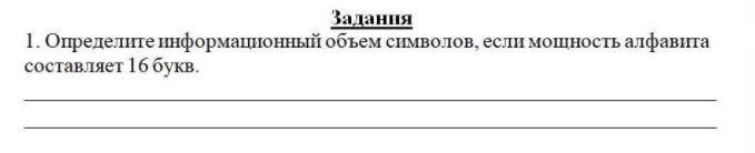 Определите информационный объем символов, если мощность алфавита составляет 16 букв