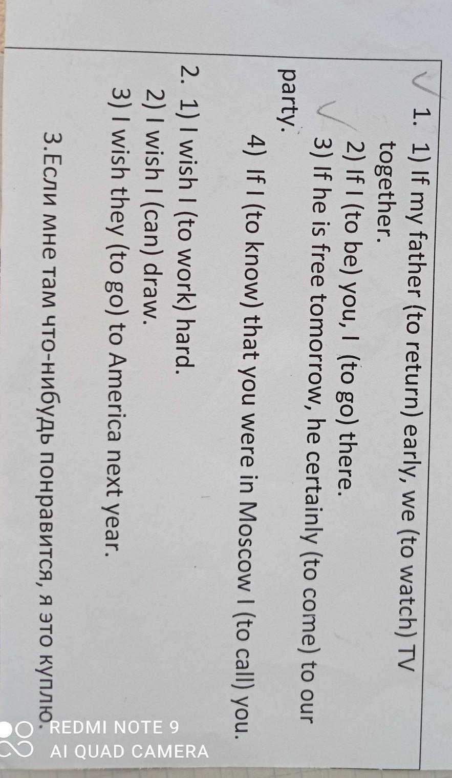 1 If my father returns early, we watch TV together. (Если папа возвращается рано, то мы вместе смотрим телевизор.)