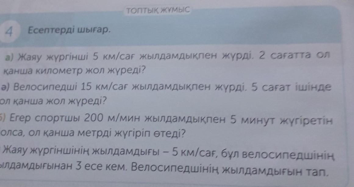 Ответ:а) 5 км/сағ • 2 сағ = 10 км/сағ