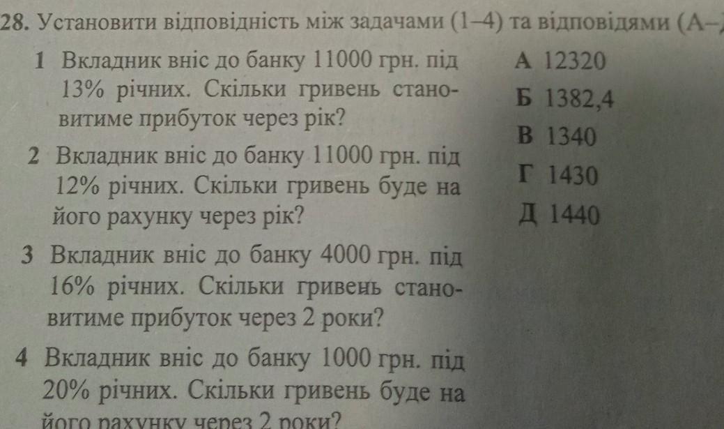 4. вкладник вніс до банку 1000 грн. під 20% річних.