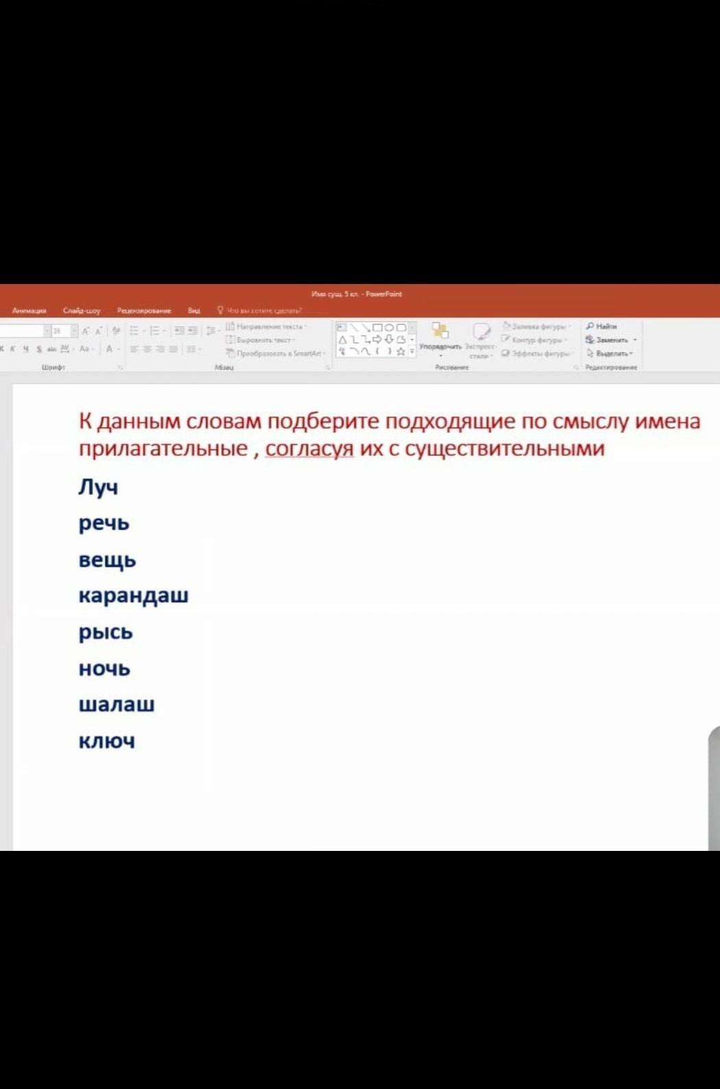 луч (какой) золотой, речь(какая) грамотная, вещь (какая) новая,карандаш (какой )цветной, рысь (какая)огромная,ночь(какая) темная, шалаш (какой)старый, ключ (какой) серебряный.