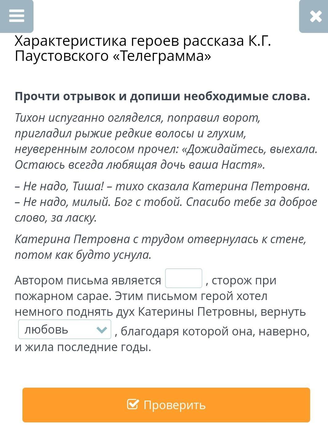 Характеристика героев рассказа К.Г. Паустовского «Телеграмма»